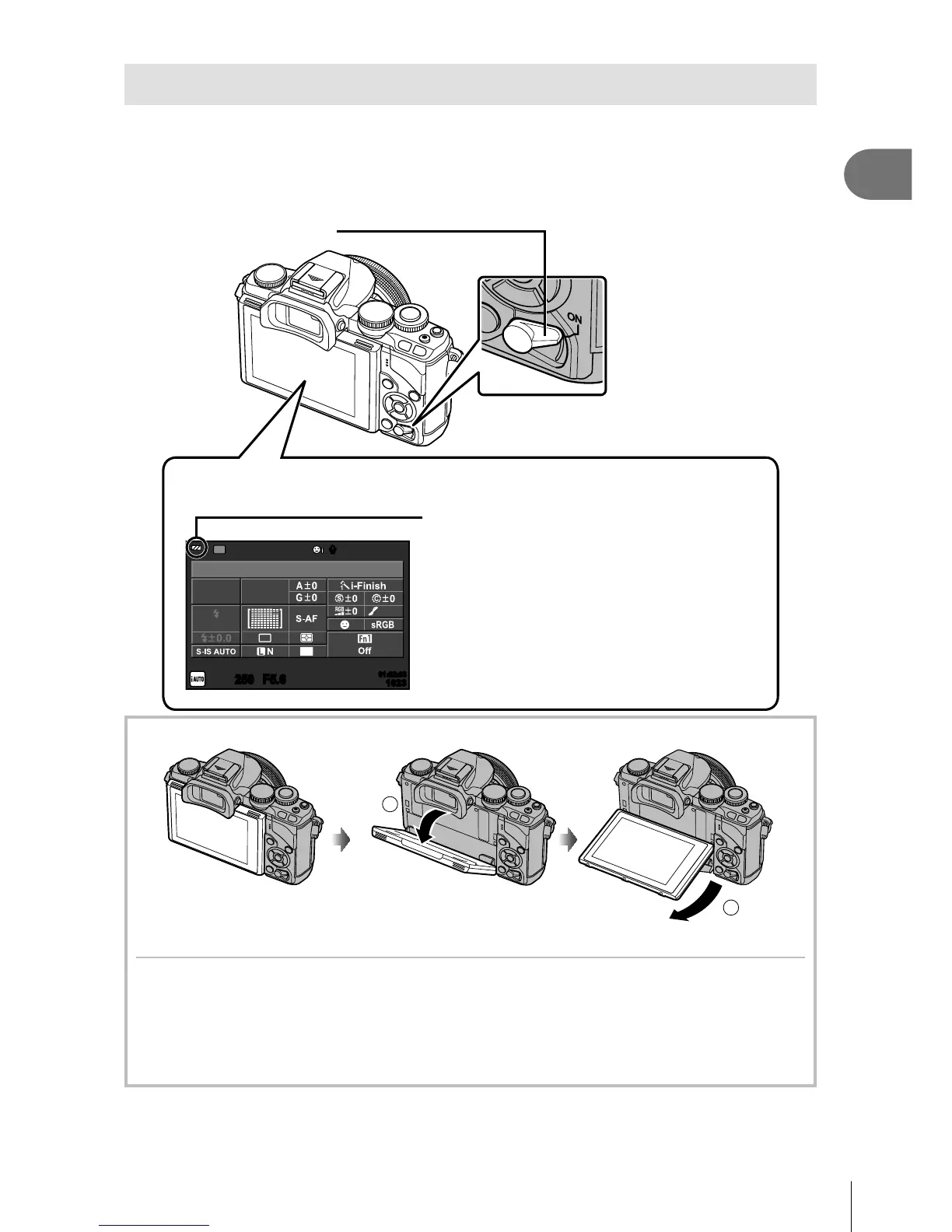 • To turn off the camera, lower the lever.