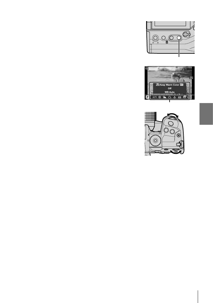 • At default settings, white balance is assigned to the WB button. [K WB] can however