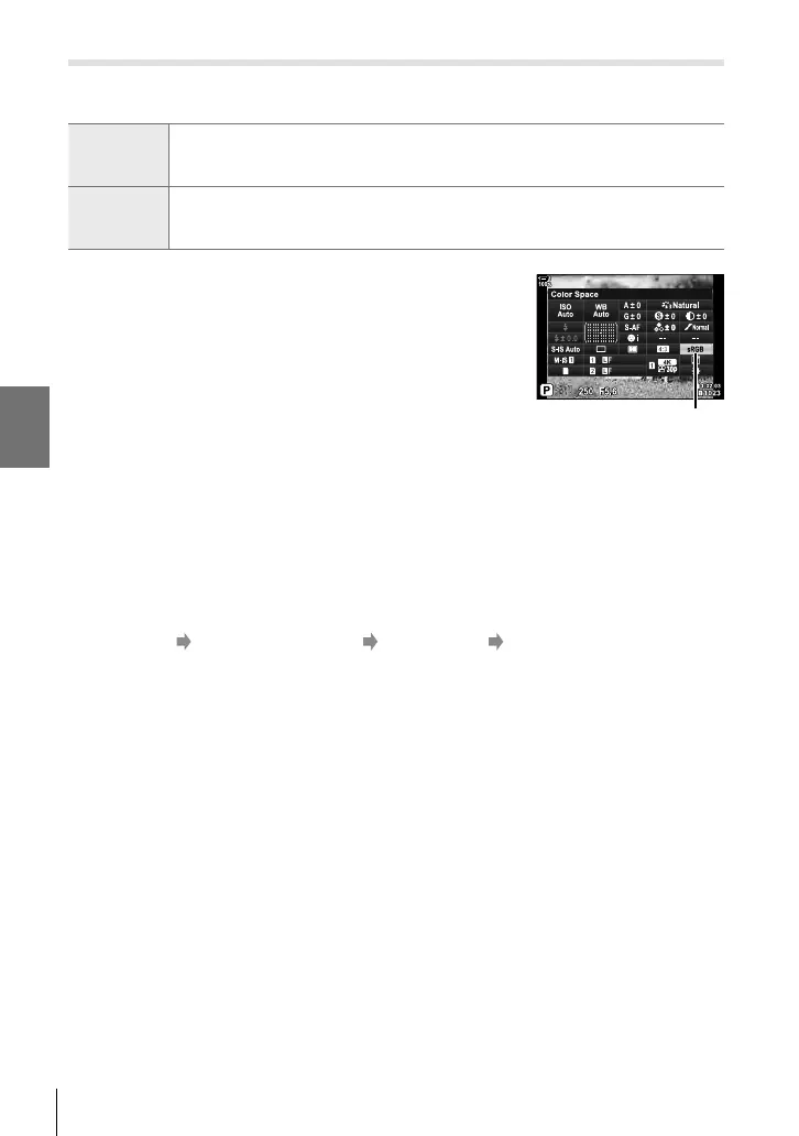 • [AdobeRGB] is not available in art fi lter picture modes or with HDR photography. [sRGB] is