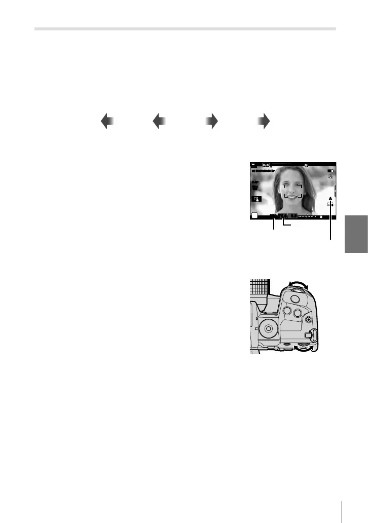 • Exposure compensation can also be adjusted using the F