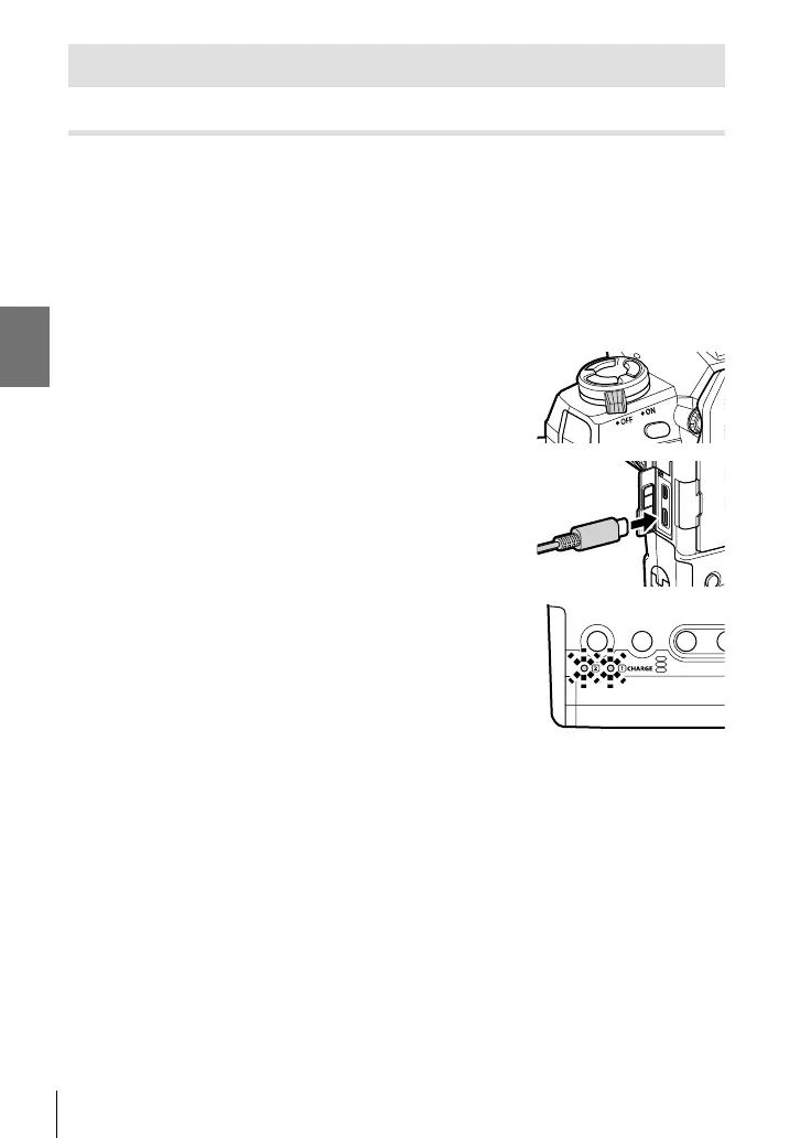 • The batteries cannot be charged via USB when the camera is on.