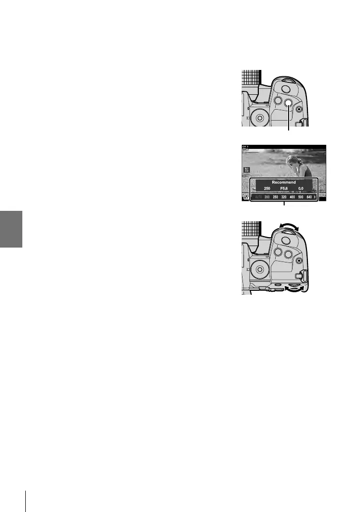 • You can also rotate the dials while pressing the ISO