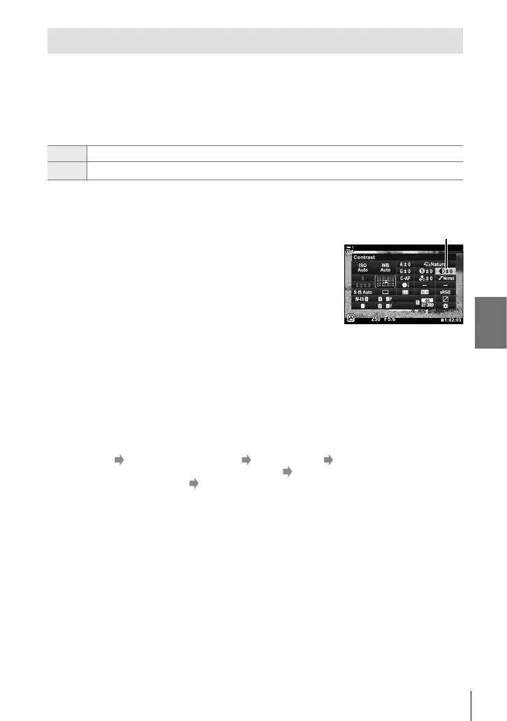 1 Highlight [Contrast] in the LV super control panel.