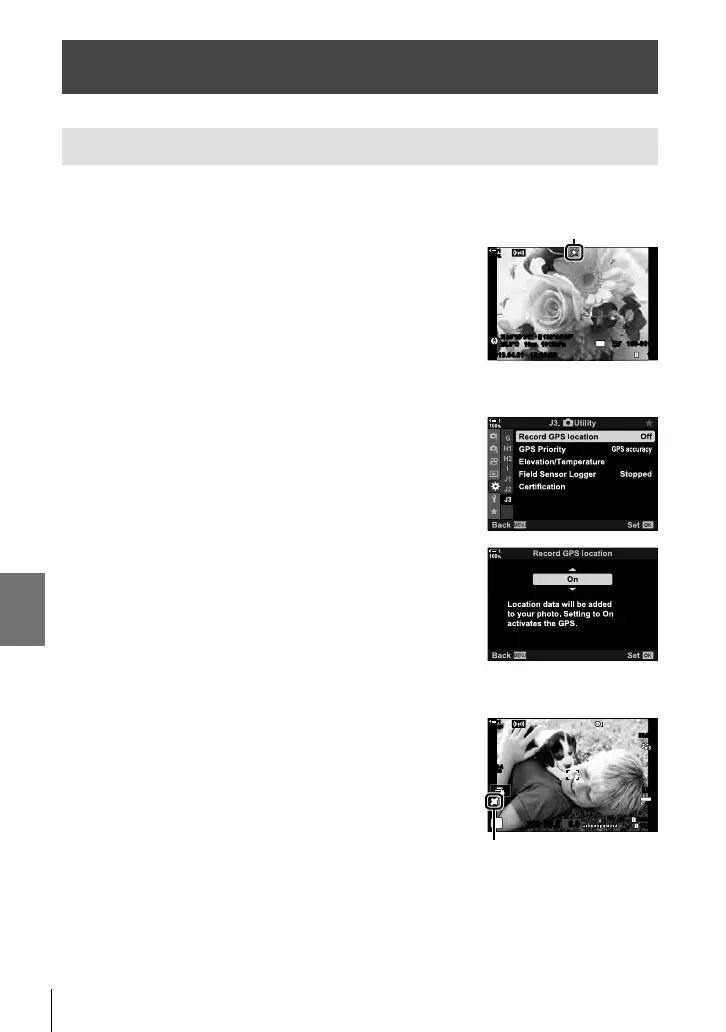 • Location data will not be recorded with pictures taken while the camera is calculating its