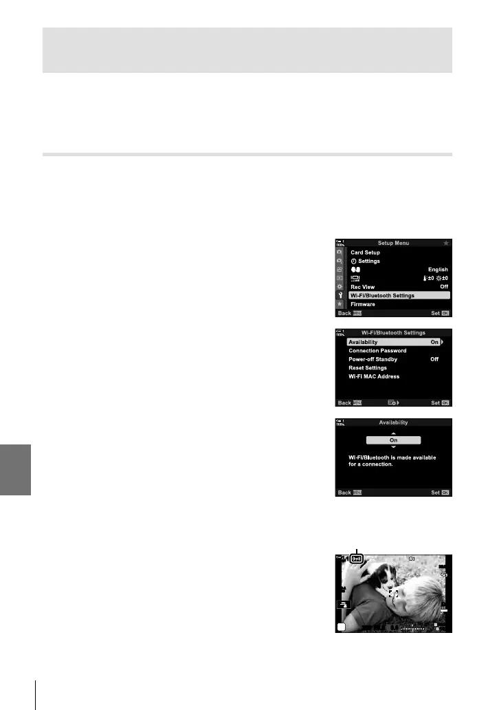 Adjust camera settings for connection to a smartphone. OI.Share is required.