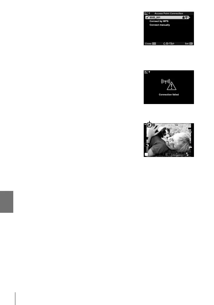 • If the connection fails, the camera will display a message
