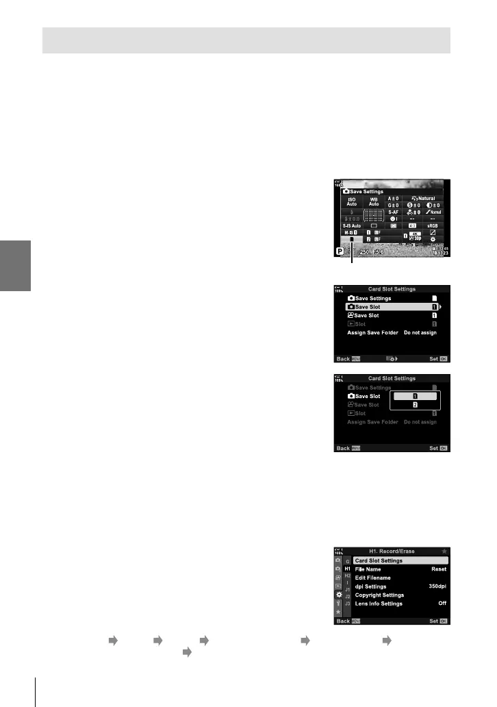MENU button G tab Y tab [Card Slot Settings] [K Save Slot] Press I on