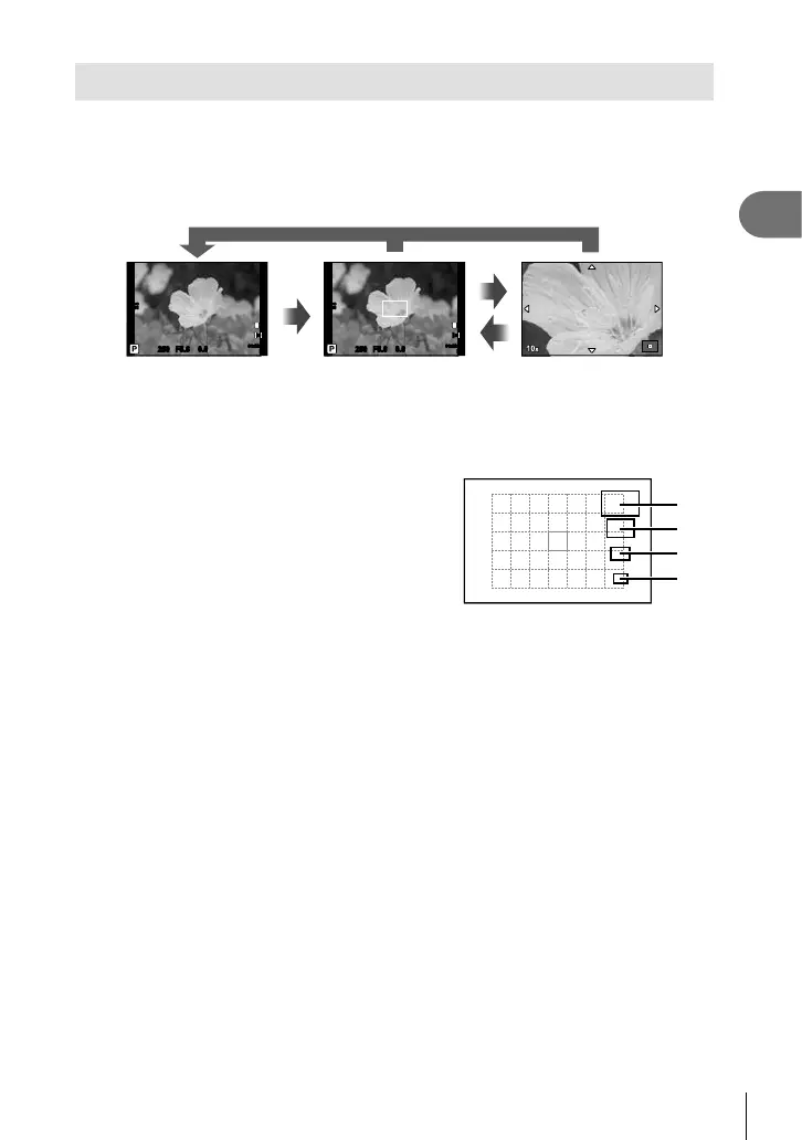 • If [mode2] is selected for [LV Close Up Mode] (P. 88), pressing the shutter button will