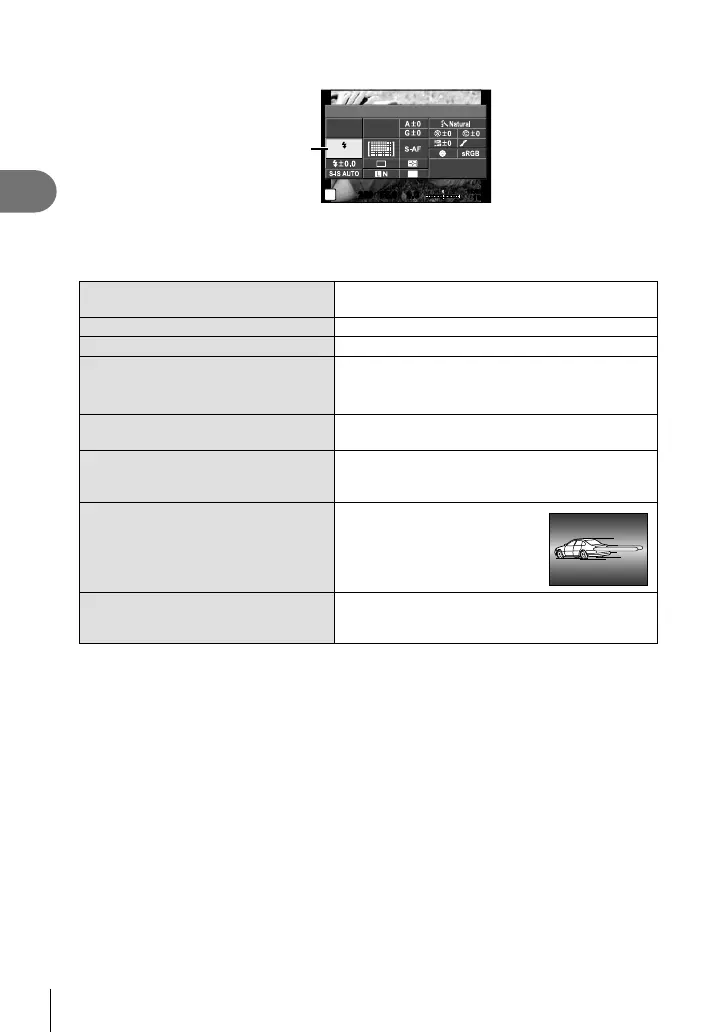 • When the fl ash fi res, the shutter speed is set to 1/250 sec. or slower. When shooting
