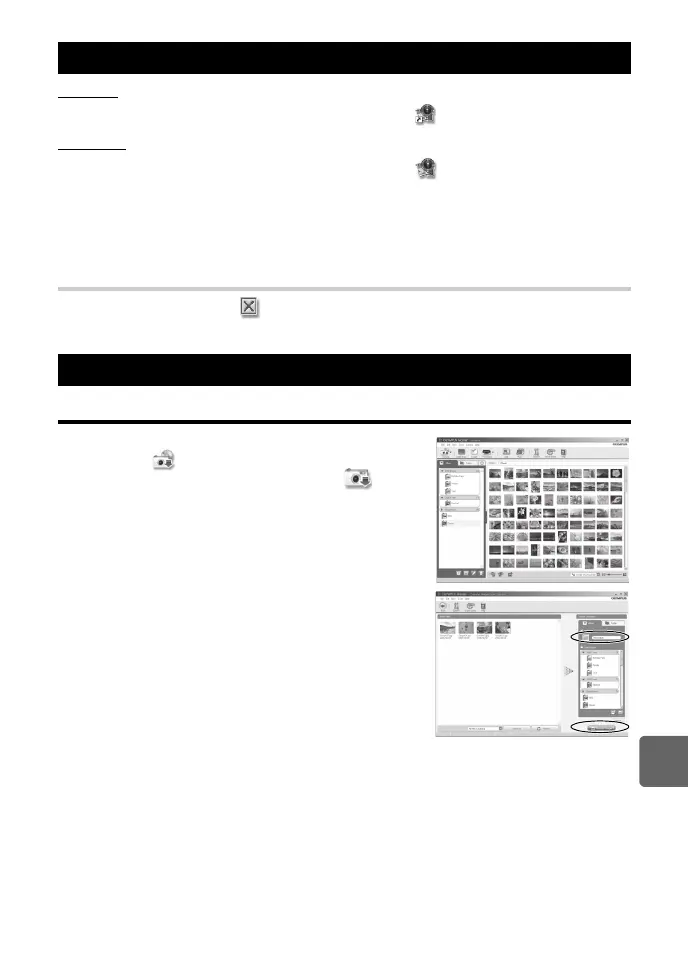 de configuração e o ecrã de registo de utilizadores do OLYMPUS Master são visualizados