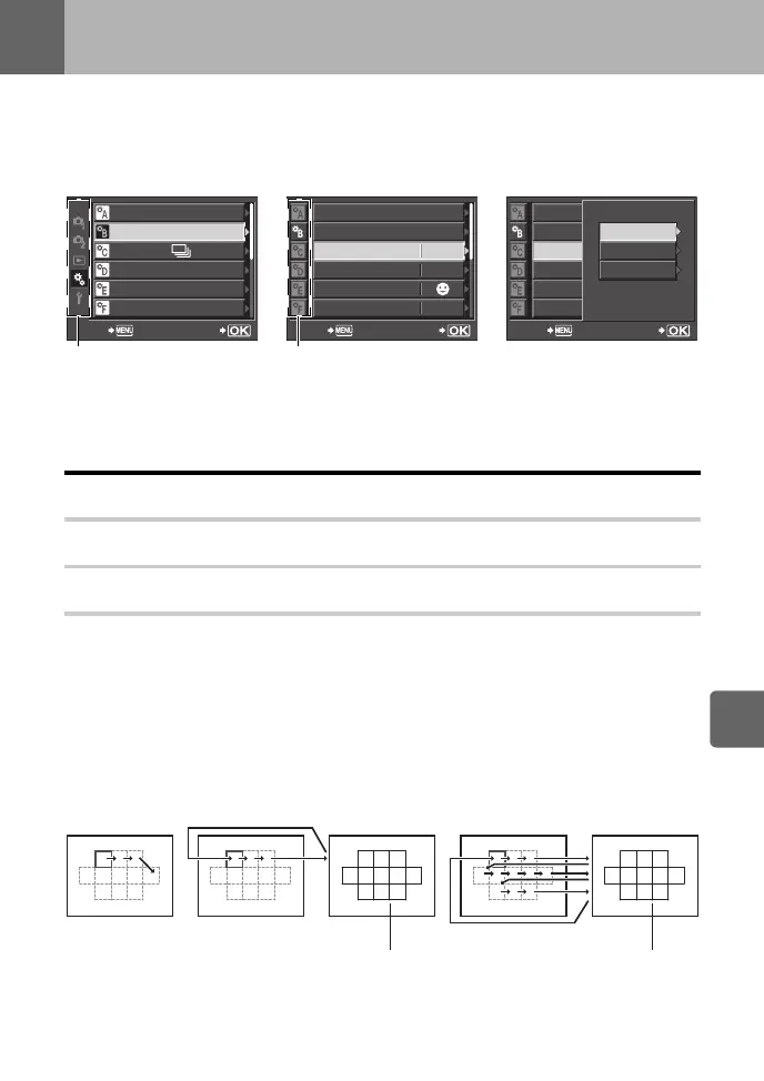 Selecciona as operações dos selectores e do selector em cruz quando selecciona a marca AF.