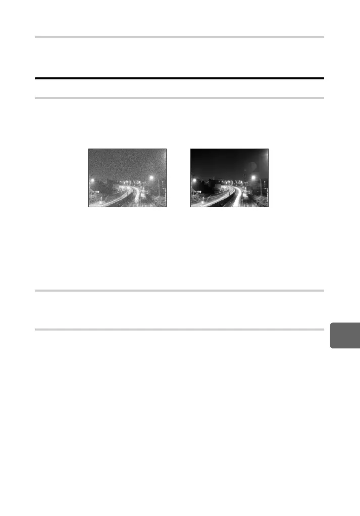 night scenes, shutter speeds are slower and noise tends to appear in images. With [NOISE