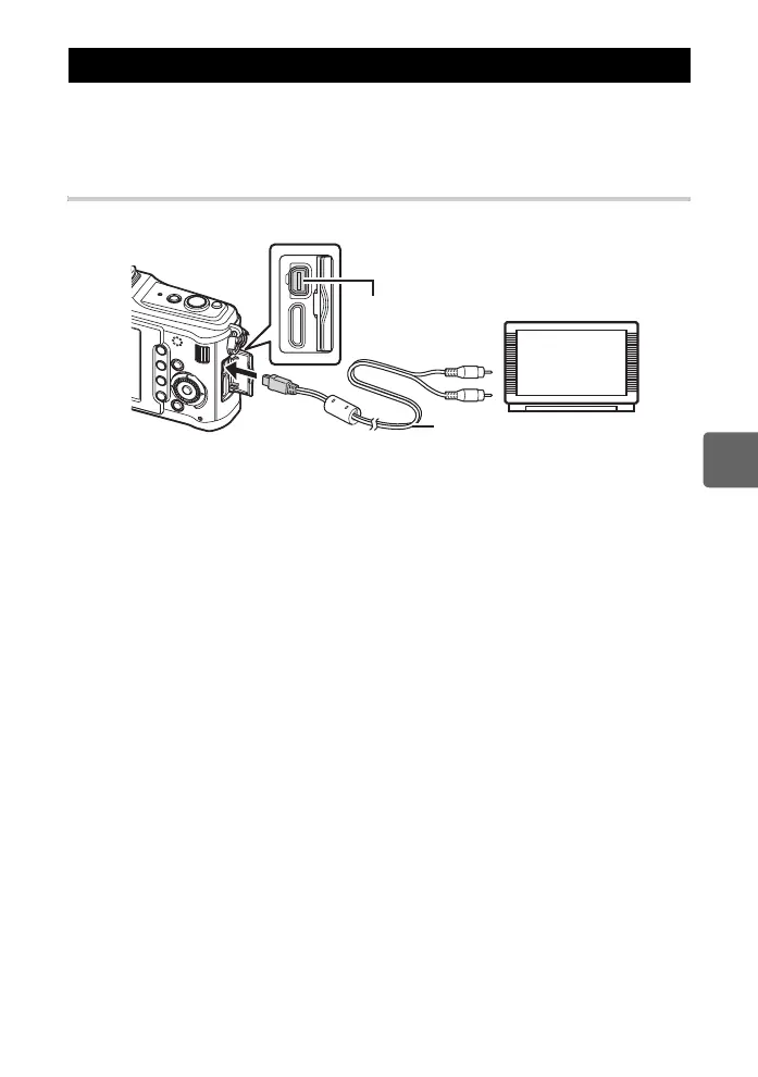 Use the AV cable provided with the camera to playback recorded images on your TV. You