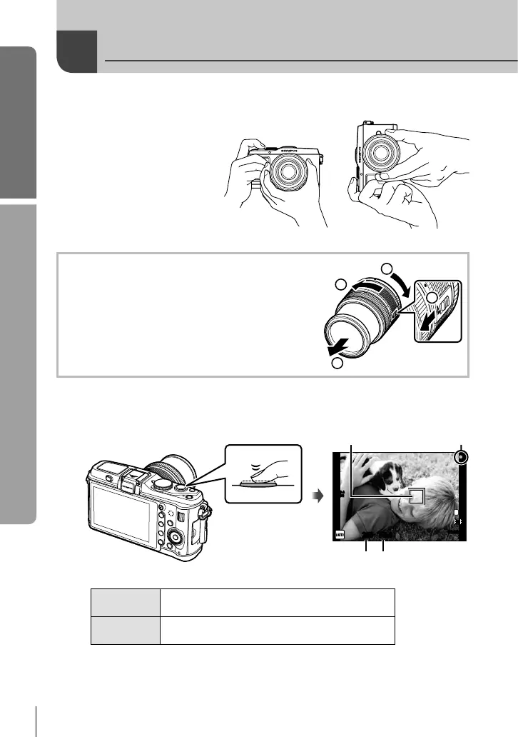 Pulse ligeramente el botón disparador hasta su primera posición (pulse el botón