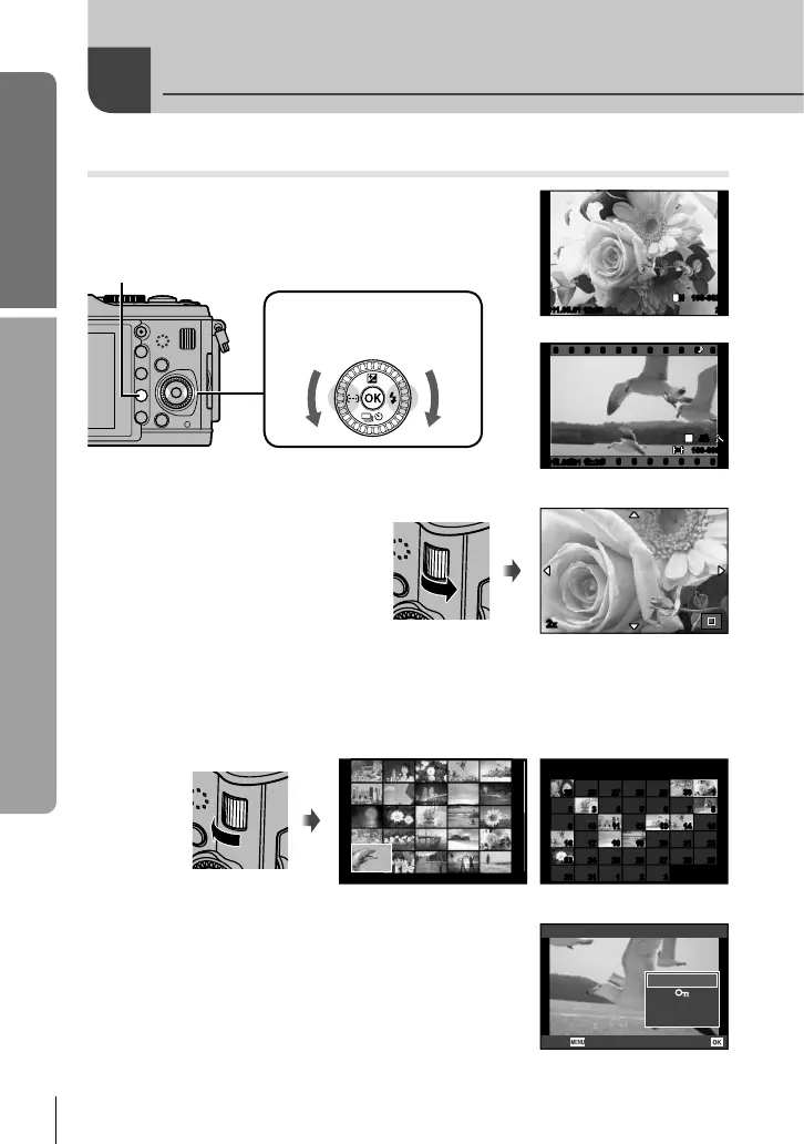 Gire el dial secundario q para visualizar múltiples imágenes (reproducción índice).