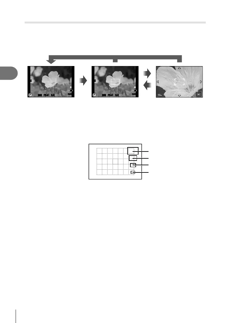 • The camera will focus using the subject in the frame at the center of the screen. To