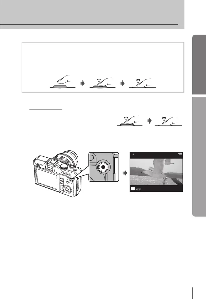 o botão disparador até meio» e a acção de premir o botão na totalidade,para a segunda