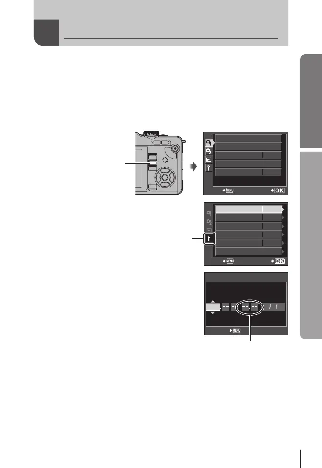 Prima i para denir o relógio da câmara e saia do menu principal.