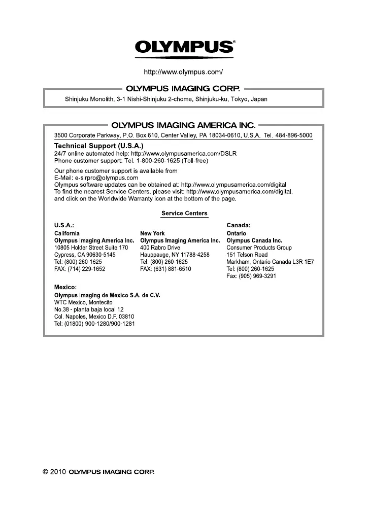 contents will differ. For the latest information, please visit the Olympus website.