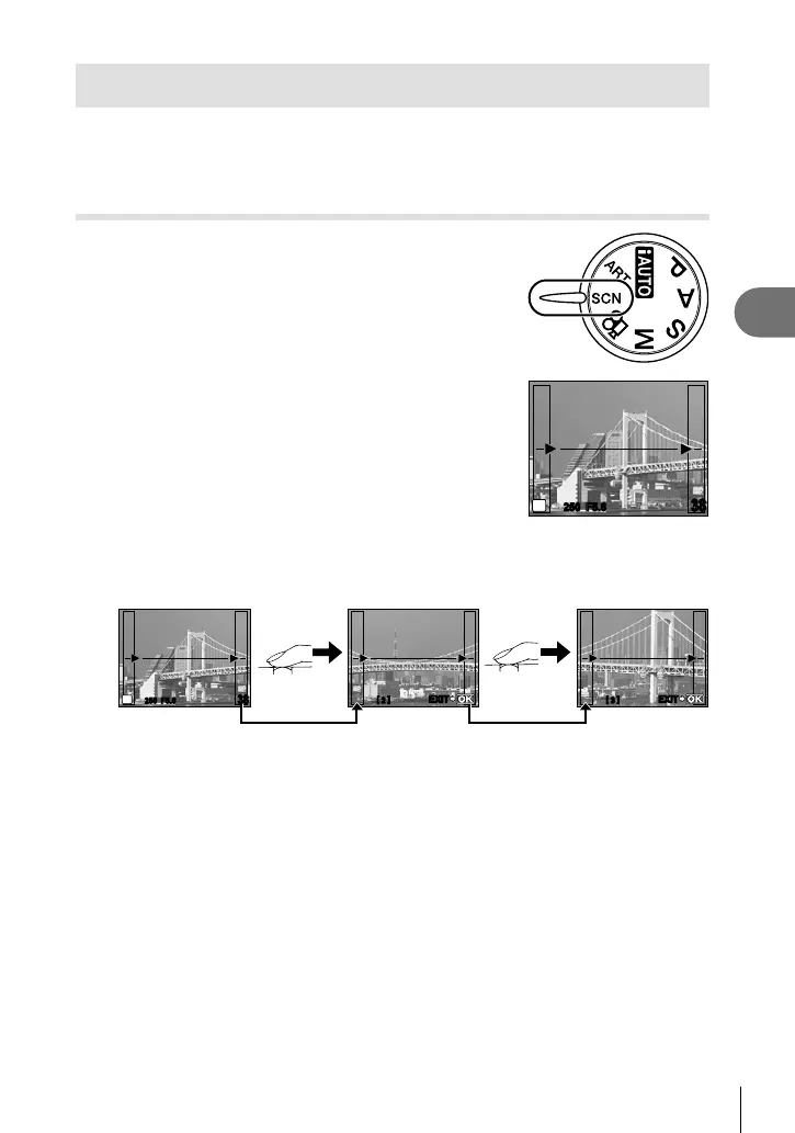 Pressing the i button before shooting the fi rst frame returns to the scene mode