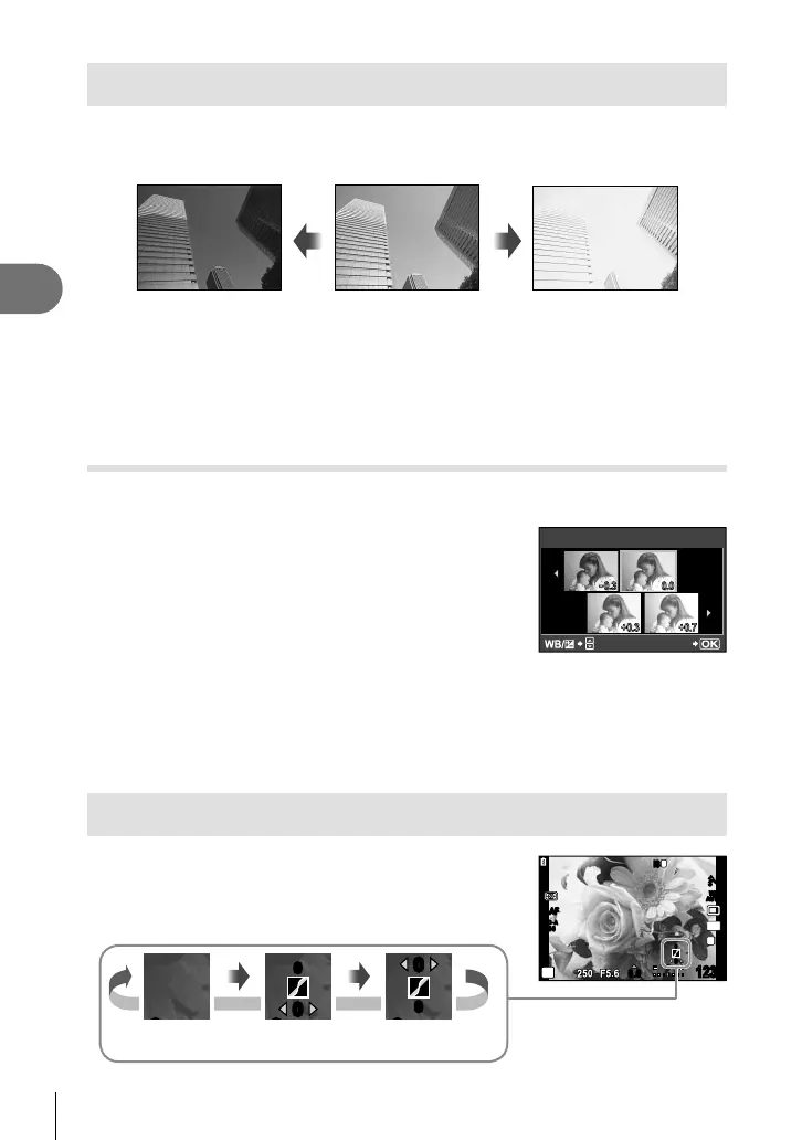 pictures darker. Exposure can be adjusted by ±3 EV.
