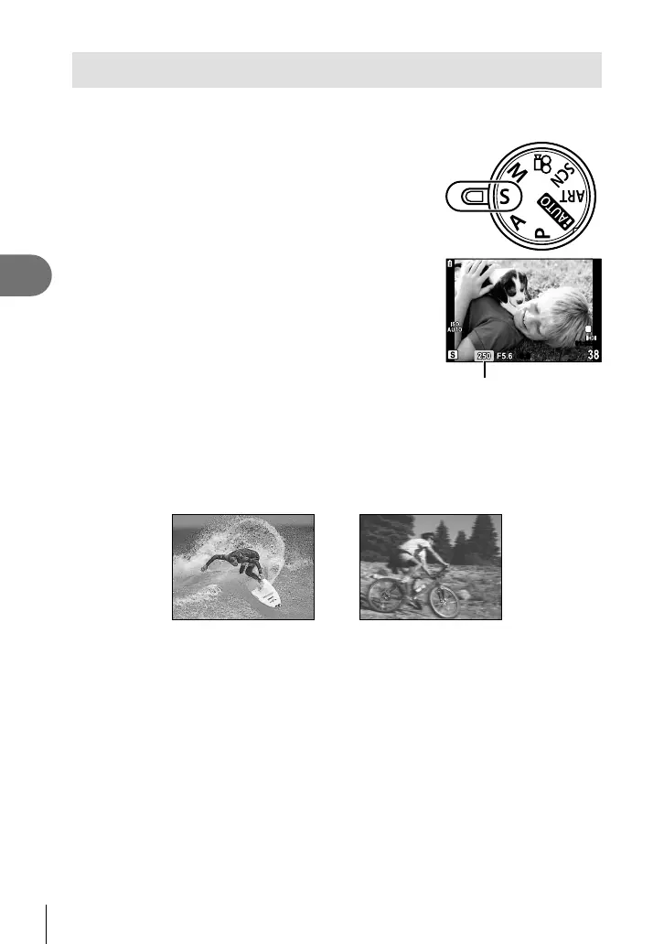 In mode S, you choose the shutter speed and let the camera automatically adjust