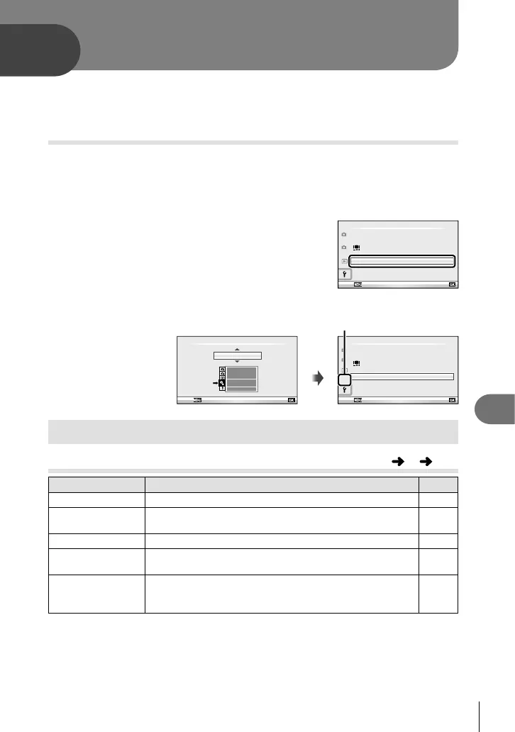 setup menu tab (P. 80) using FG and press I.