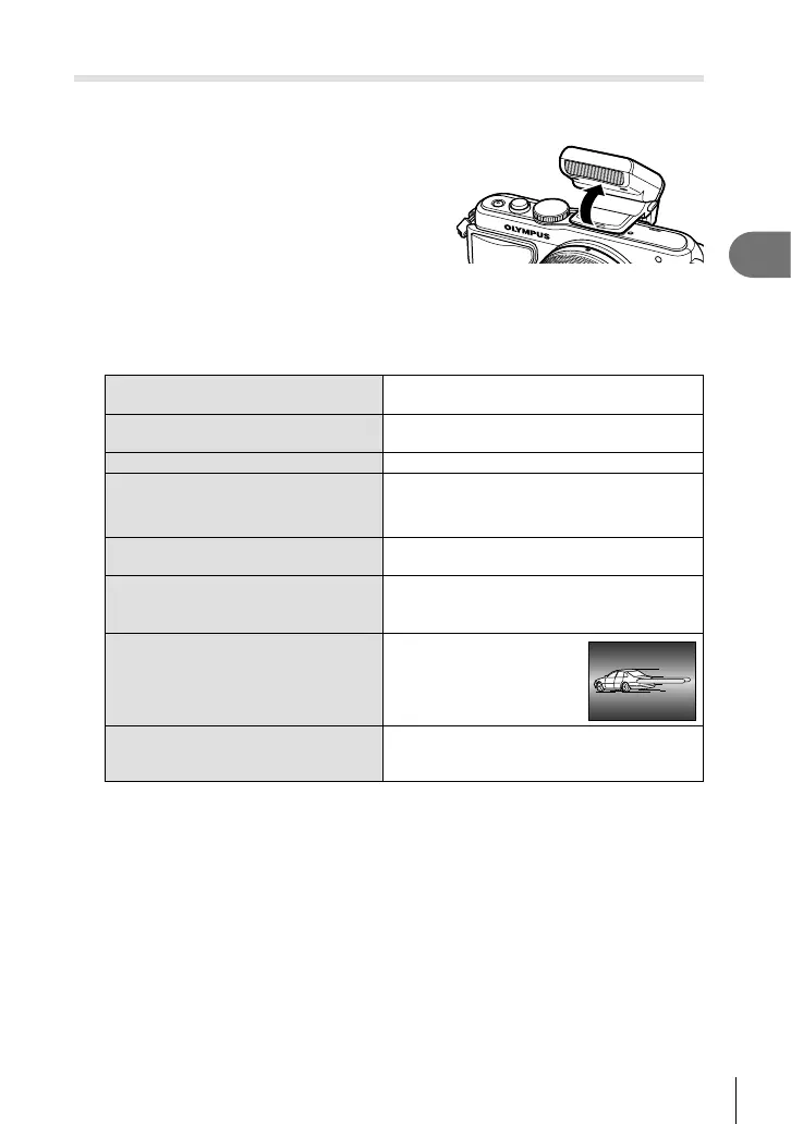 • When the fl ash fi res, the shutter speed is set to 1/250 sec. or slower. When shooting