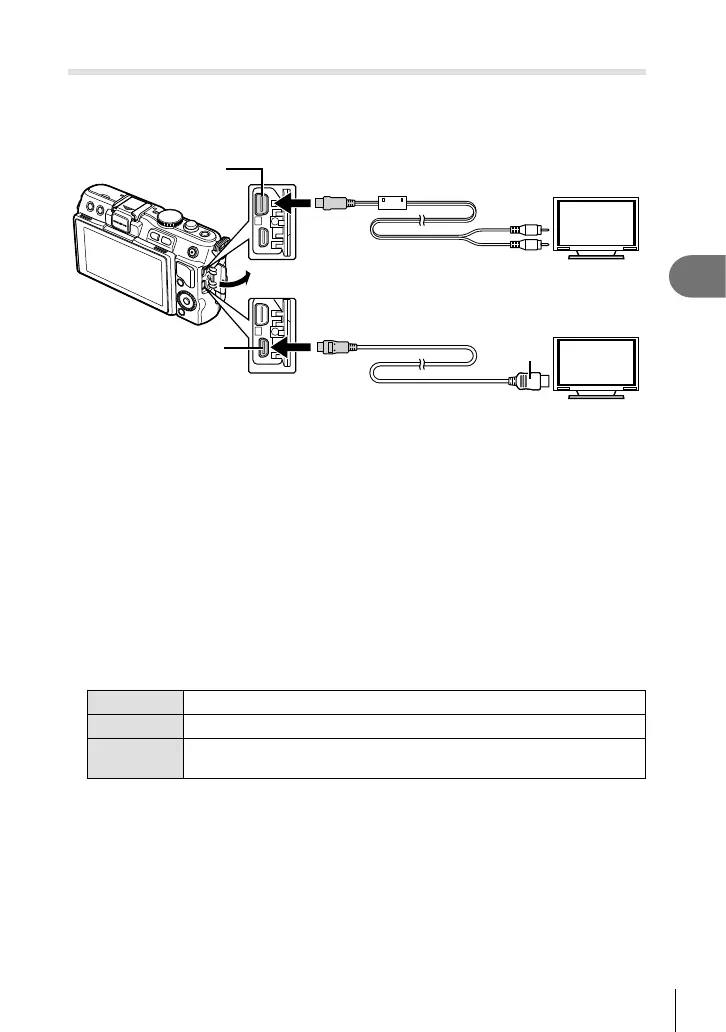• If the camera is connected using both an AV and HDMI cables, it will assign priority to