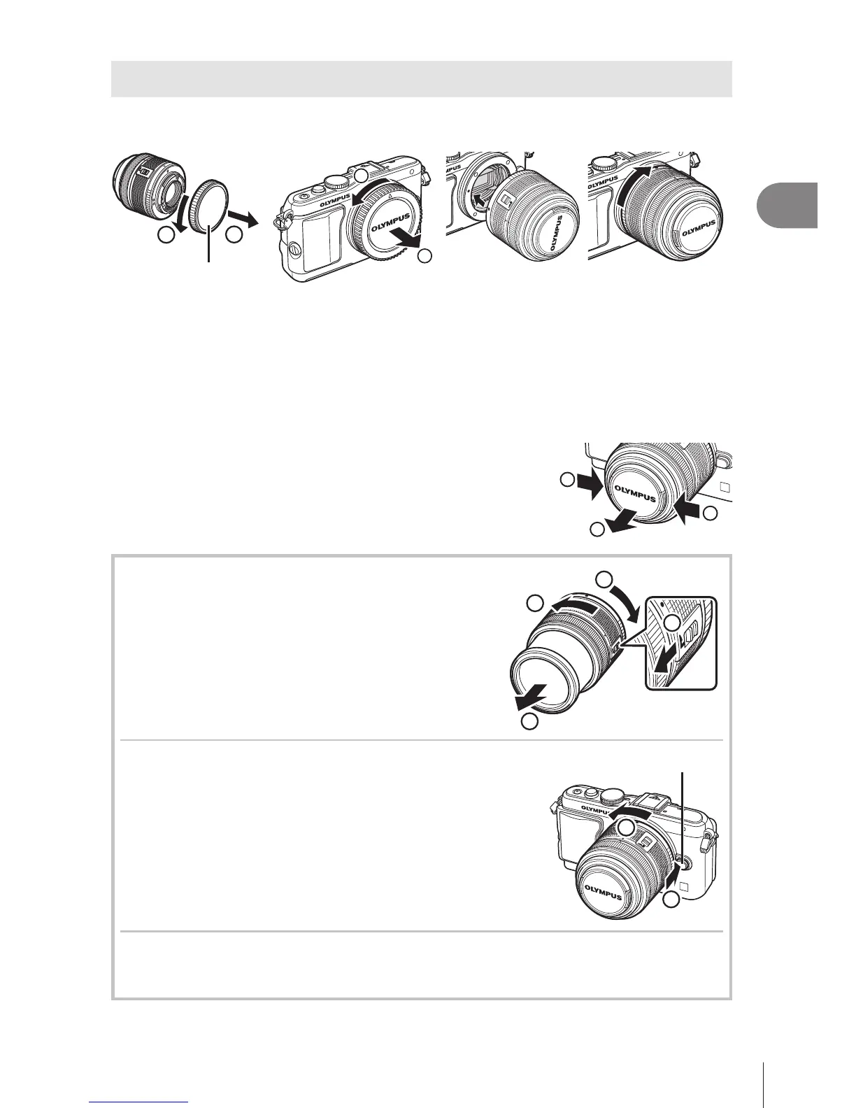While pressing the lens release button, rotate the