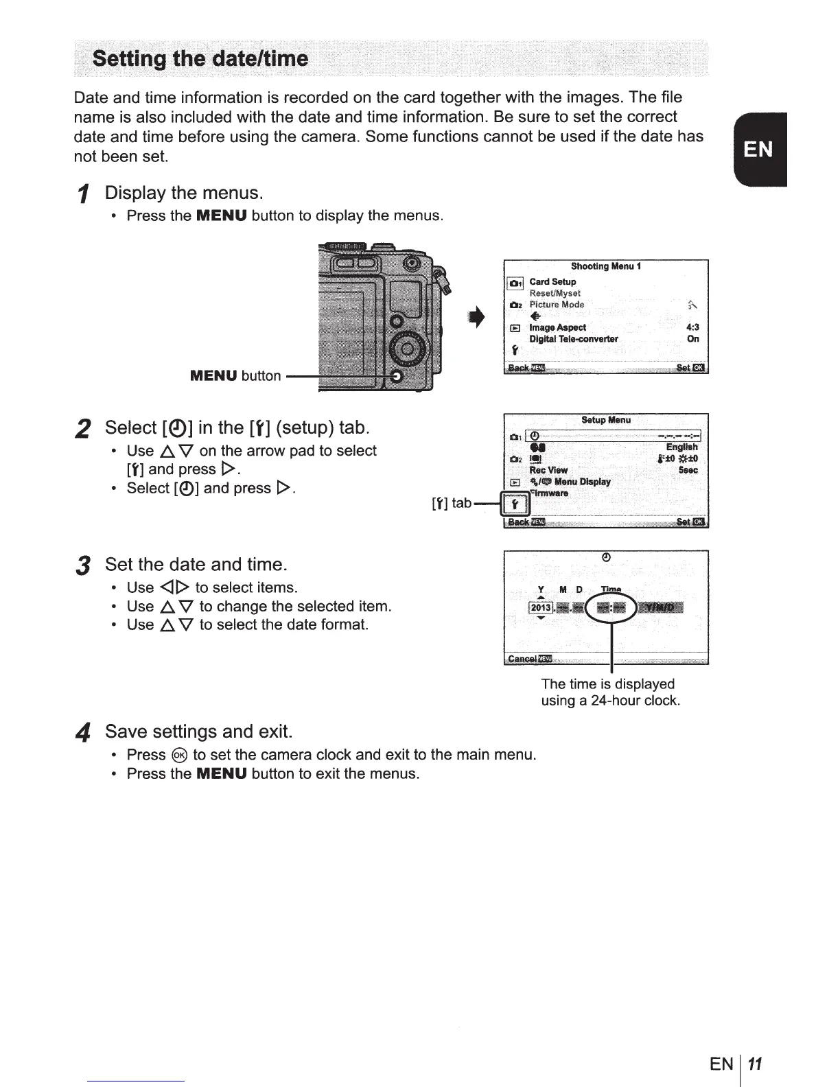 also included with the date and time information. Be sure to set the correct