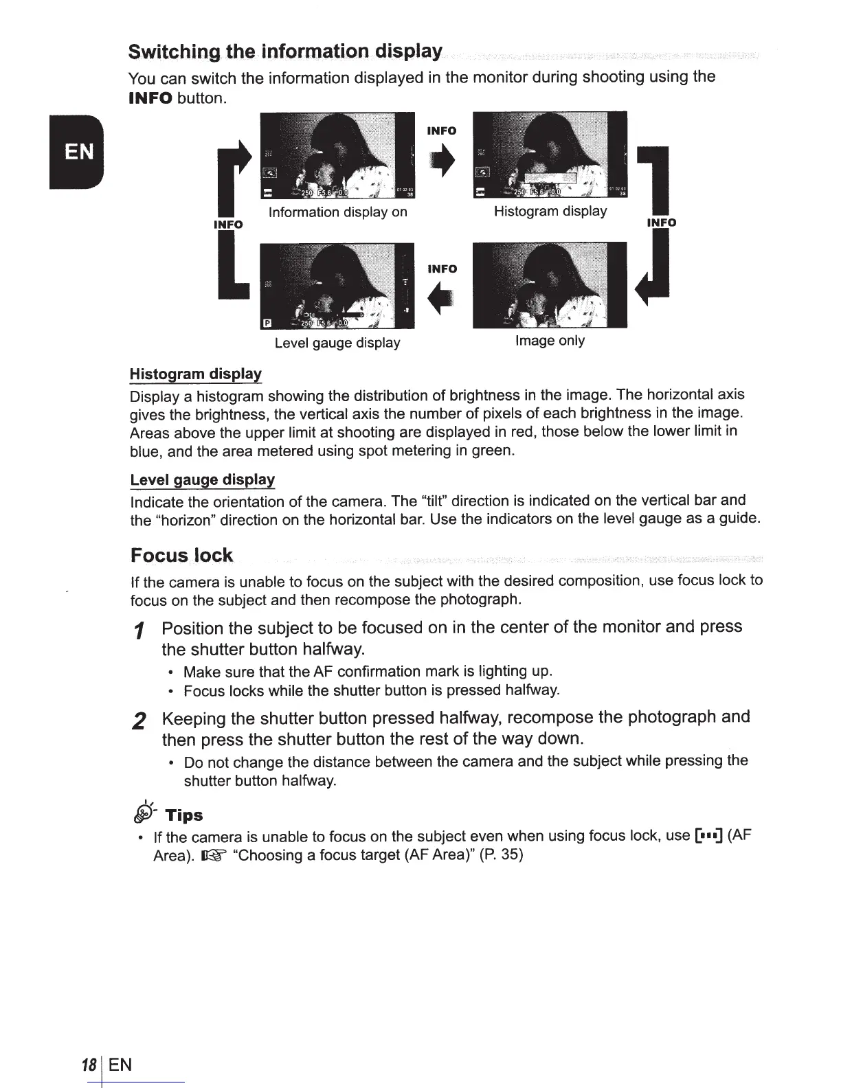 the camera is unable to focus on the subject with the desired composition, use focus lock to