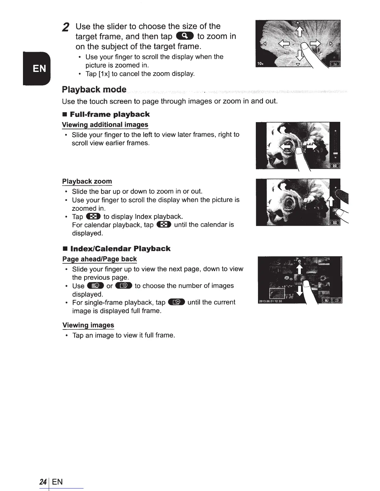 Use the touch screen to page through images or zoom