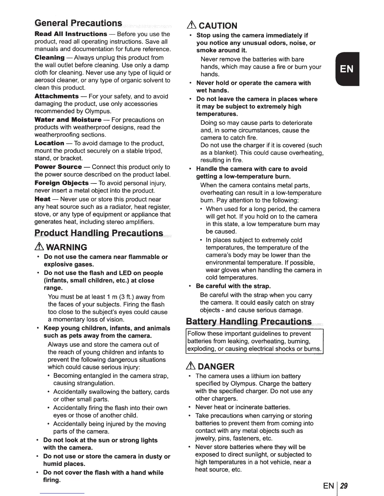specified by Olympus. Charge the battery