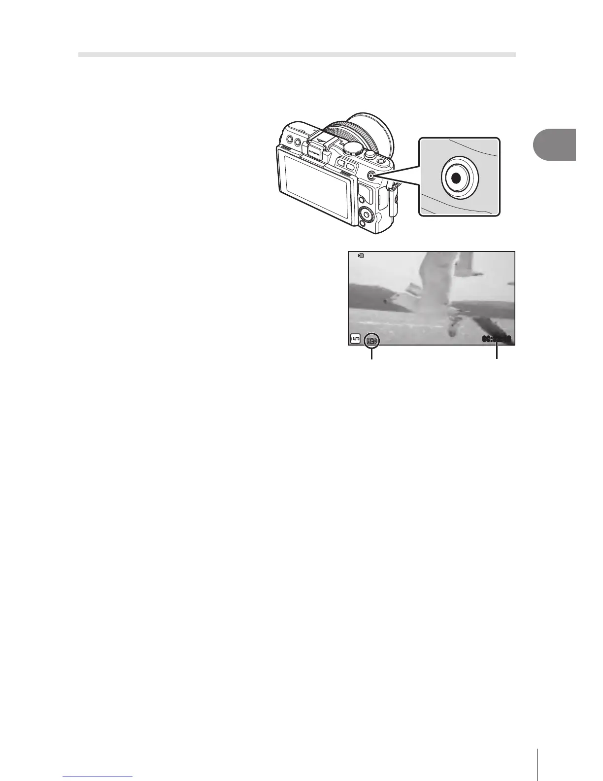 photograph. Movie recording restarts after the photograph is taken. Press the R button