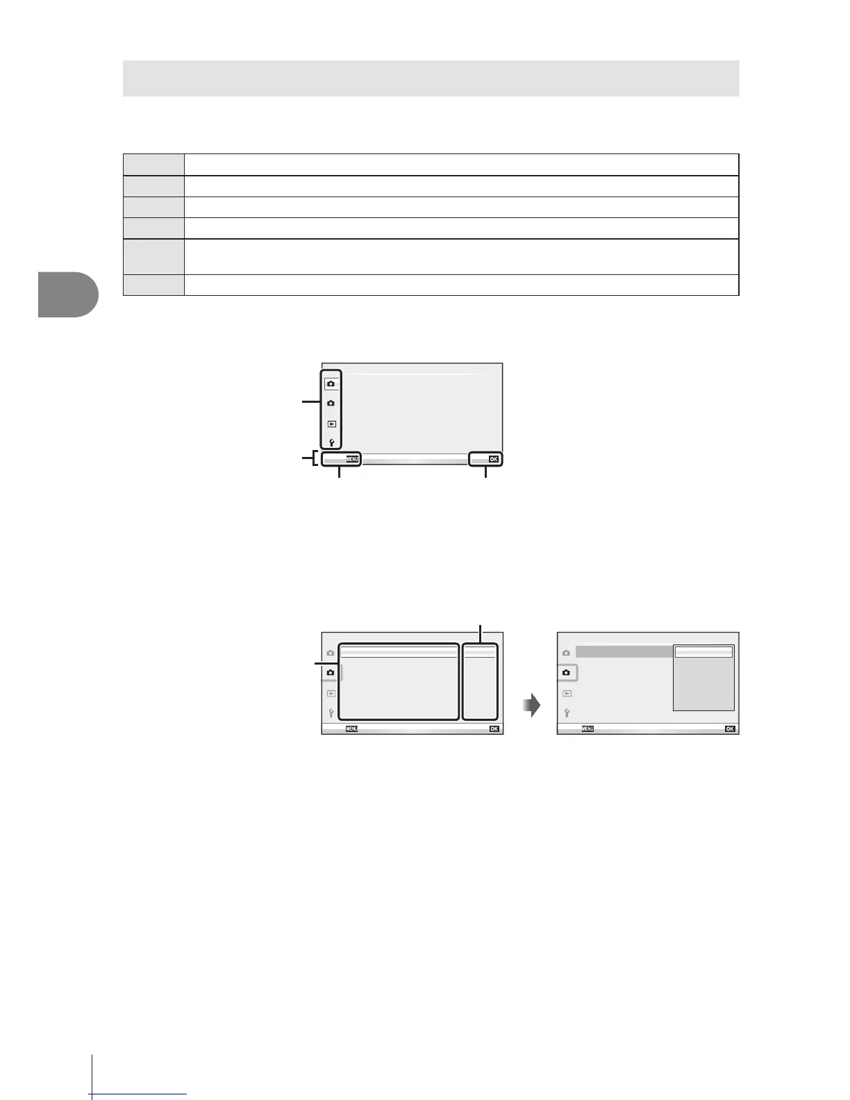 • For the default settings of each option, refer to “Menu directory” (P. 115).