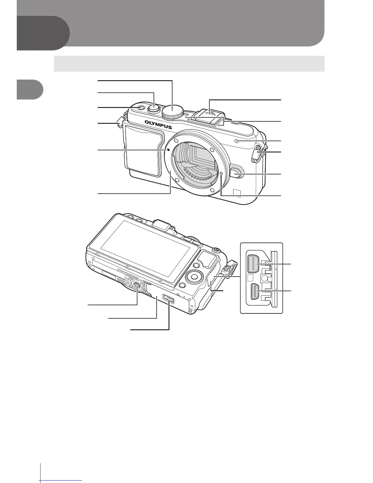 2 Shutter button ...........................P. 18, 23