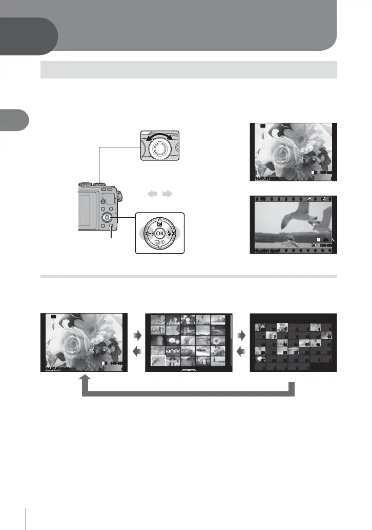• Select the desired photograph or movie using the control dial (P) or arrow pad.