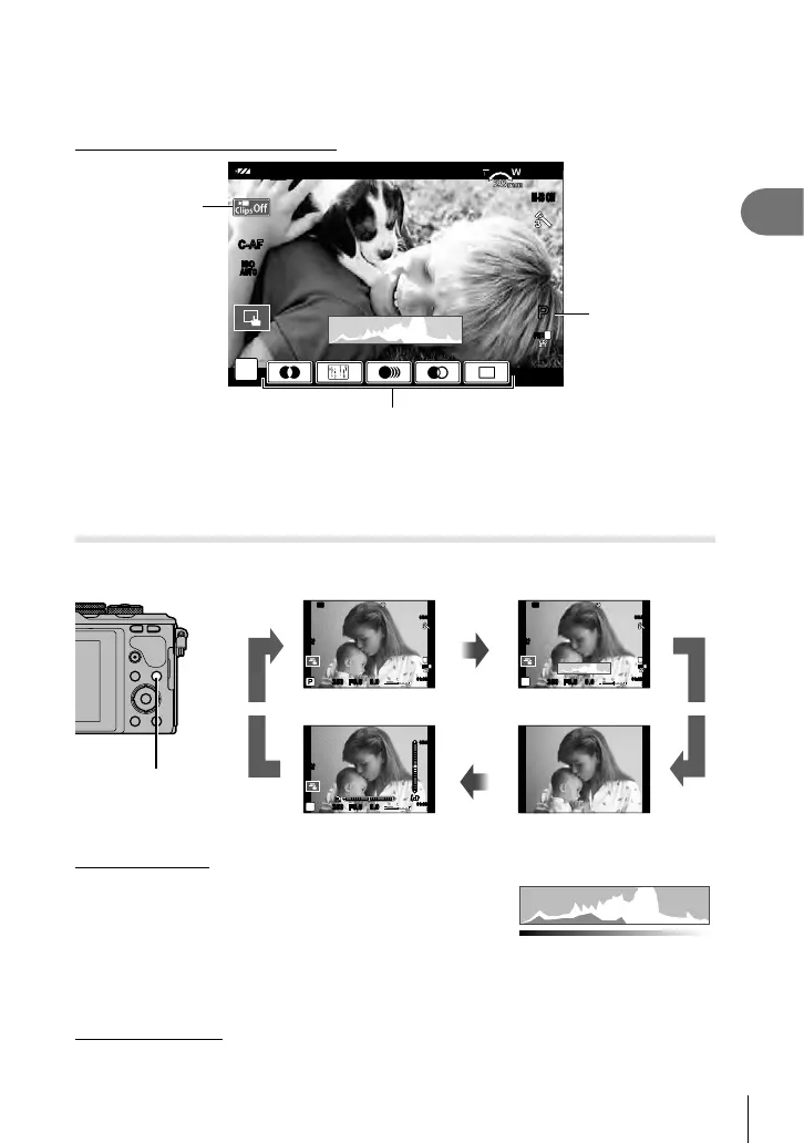 You can switch the information displayed in the monitor during shooting using the