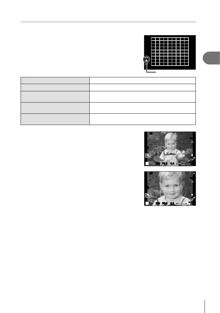 Face priority is also available in [MF]. Faces detected by the camera are indicated by