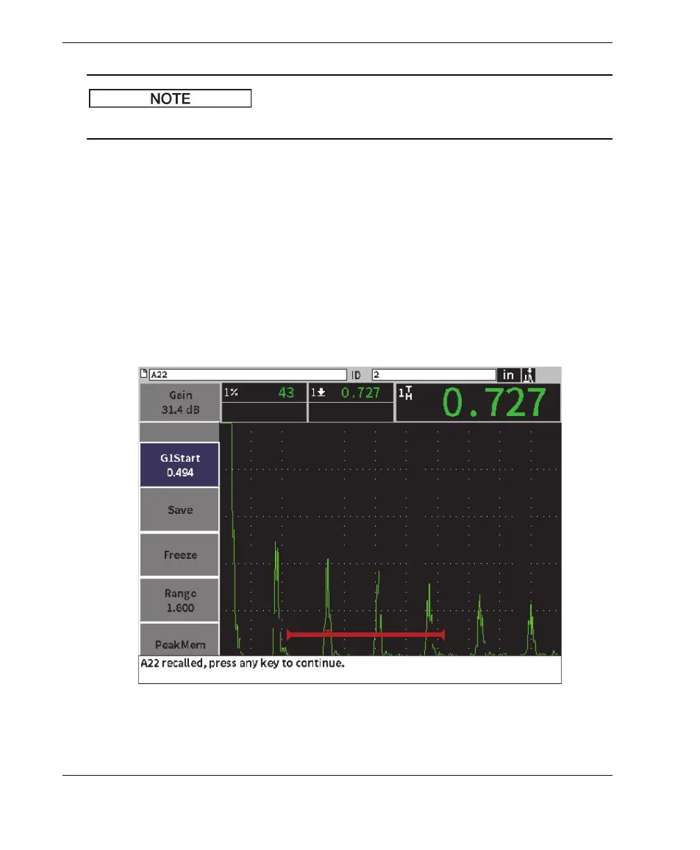 2. Press the Enter key to bring the saved data to the live A-scan display (see