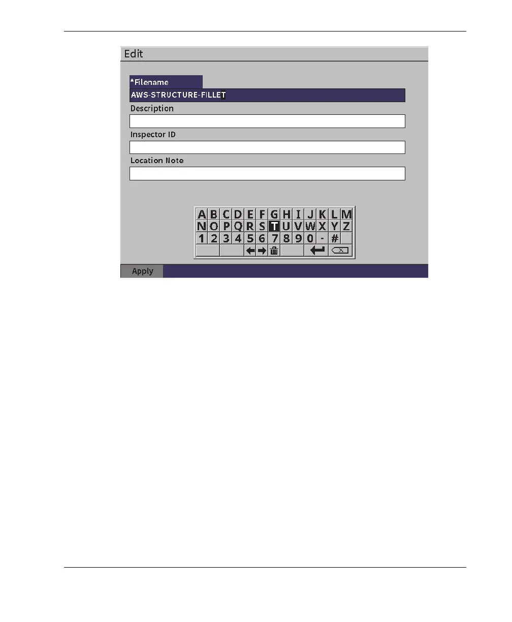 4. Enter characters (up to 32) using the virtual keypad, adjustment knob, and the