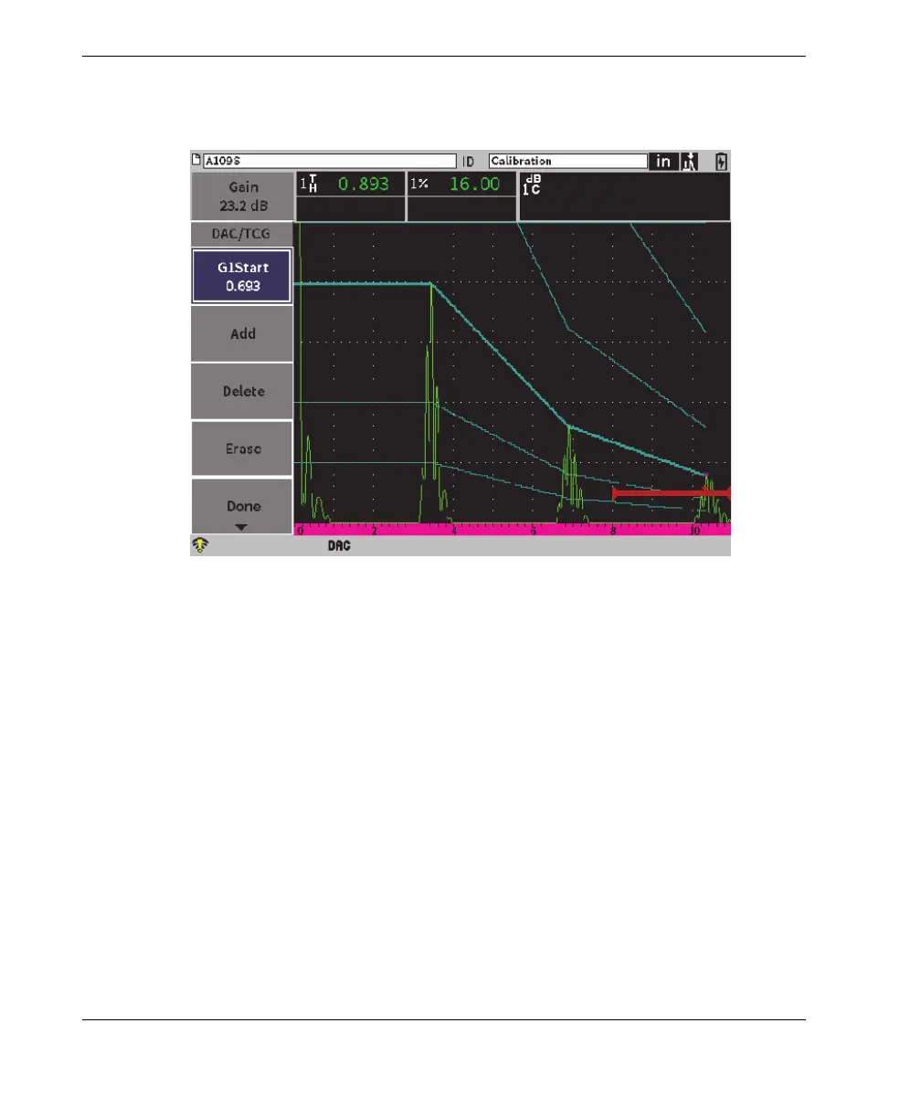 The DAC/TCG software option features a DAC curve setup that allows you to define