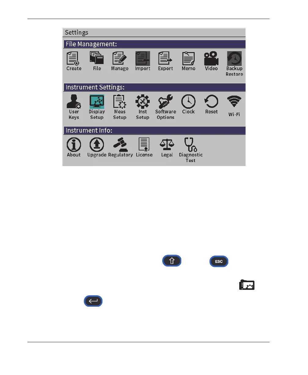 1. On the live A-scan screen, press the Shift ( ), Escape ( ) key sequence