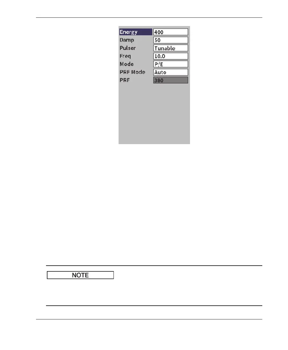 1. In the pulser dialog box, press the Enter key to highlight the Energy value.