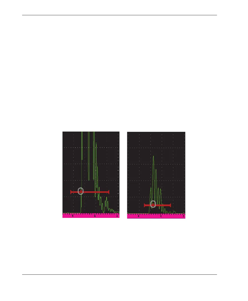 Figure 7-5 Gate trigger indicator in Edge (left) and Peak (right) modes
