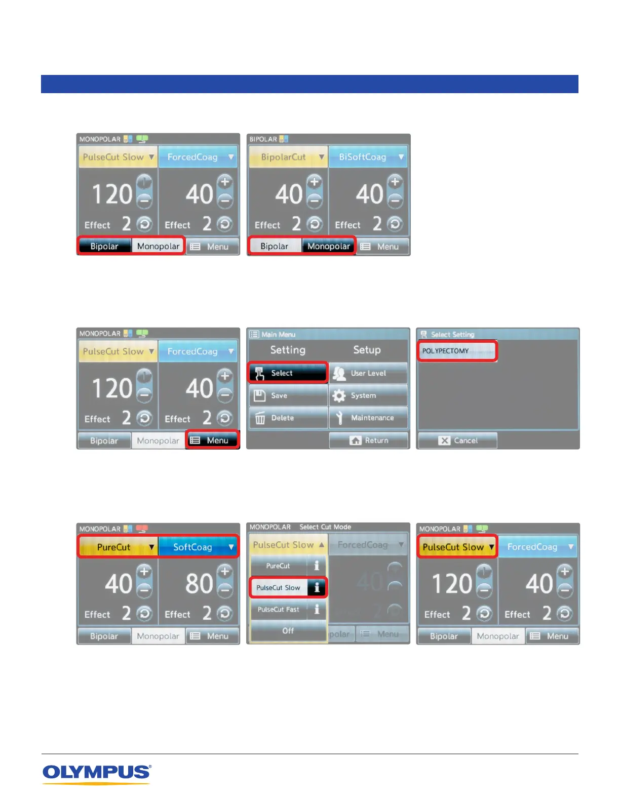 1) Select the mode by tapping on the desired mode located on the bottom of the touch screen.