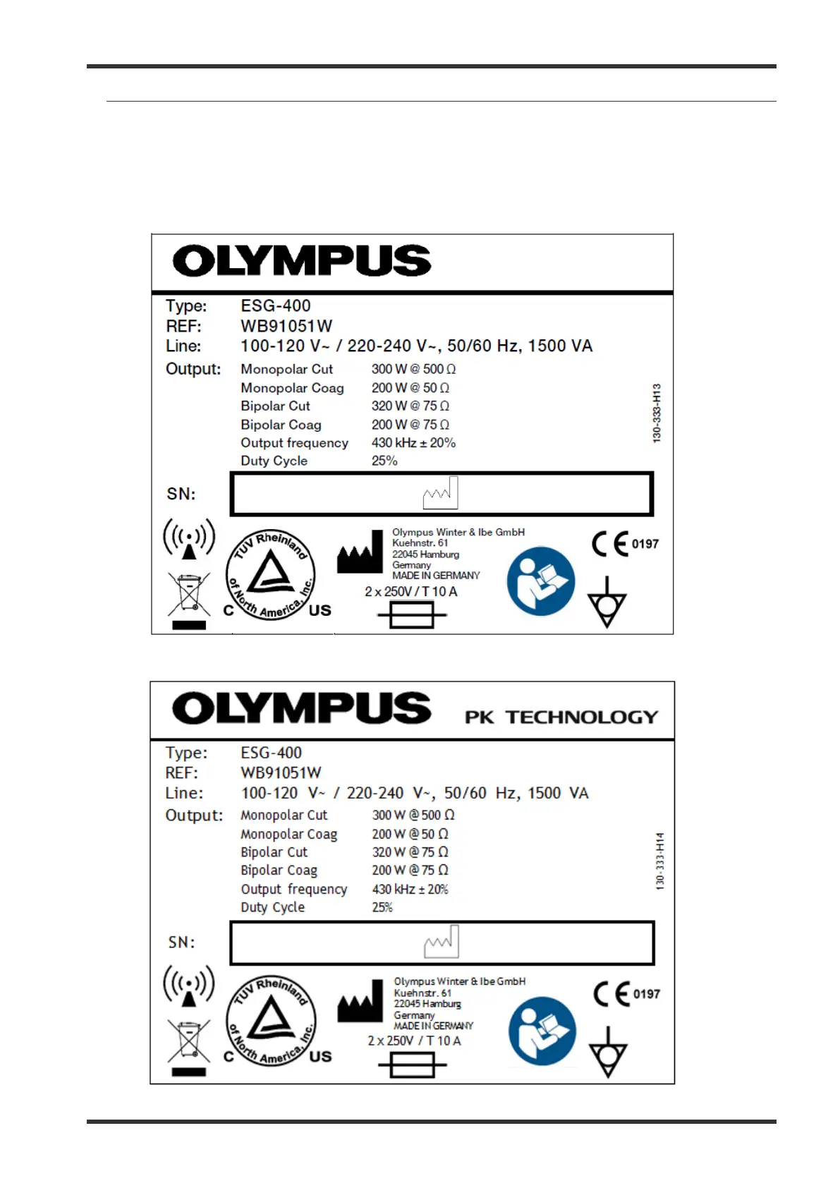 Fig. 5.2.1. Sample of type plate of the electrosurgical unit