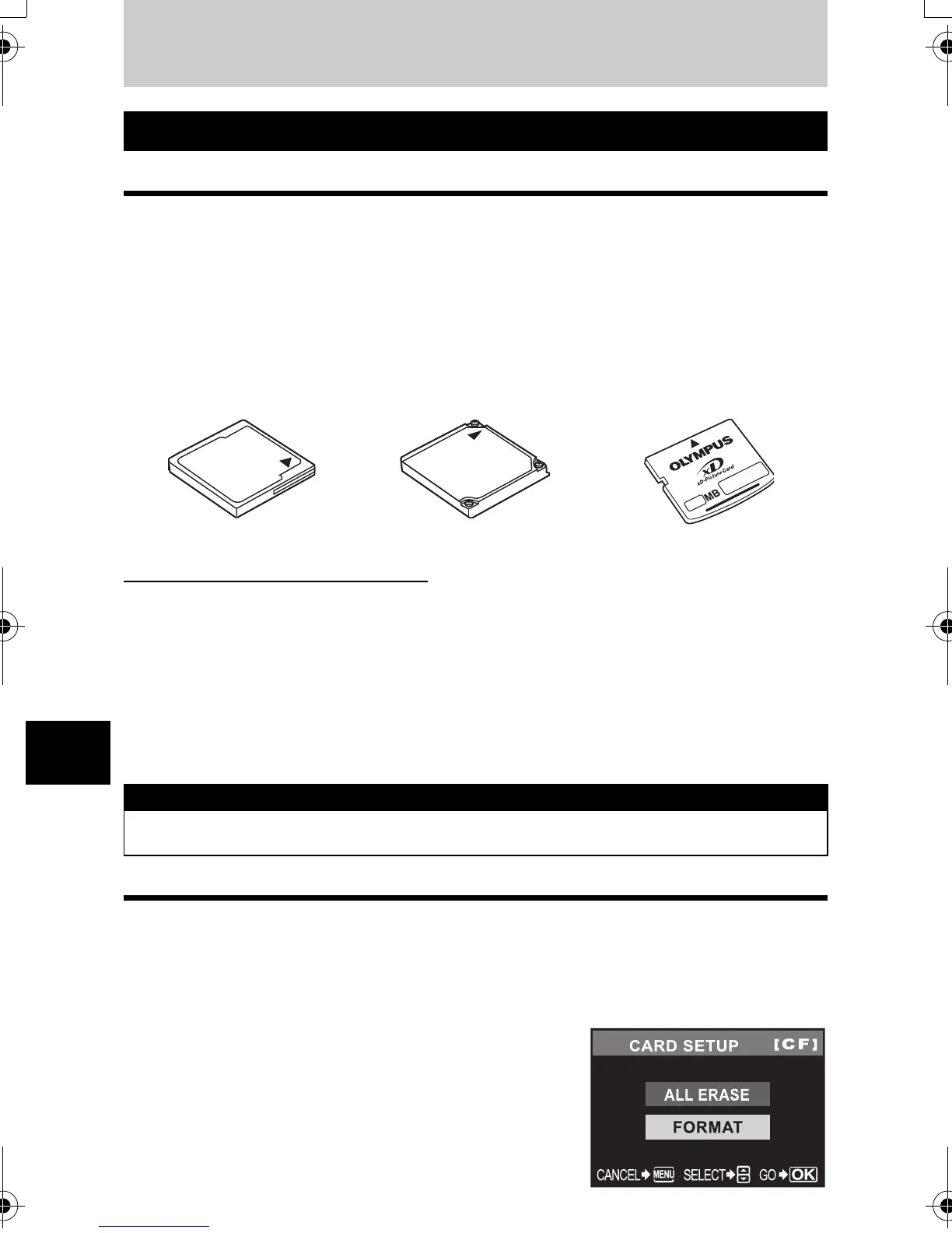 “Card” in this manual refers to a recording medium. This camera can use CompactFlash,