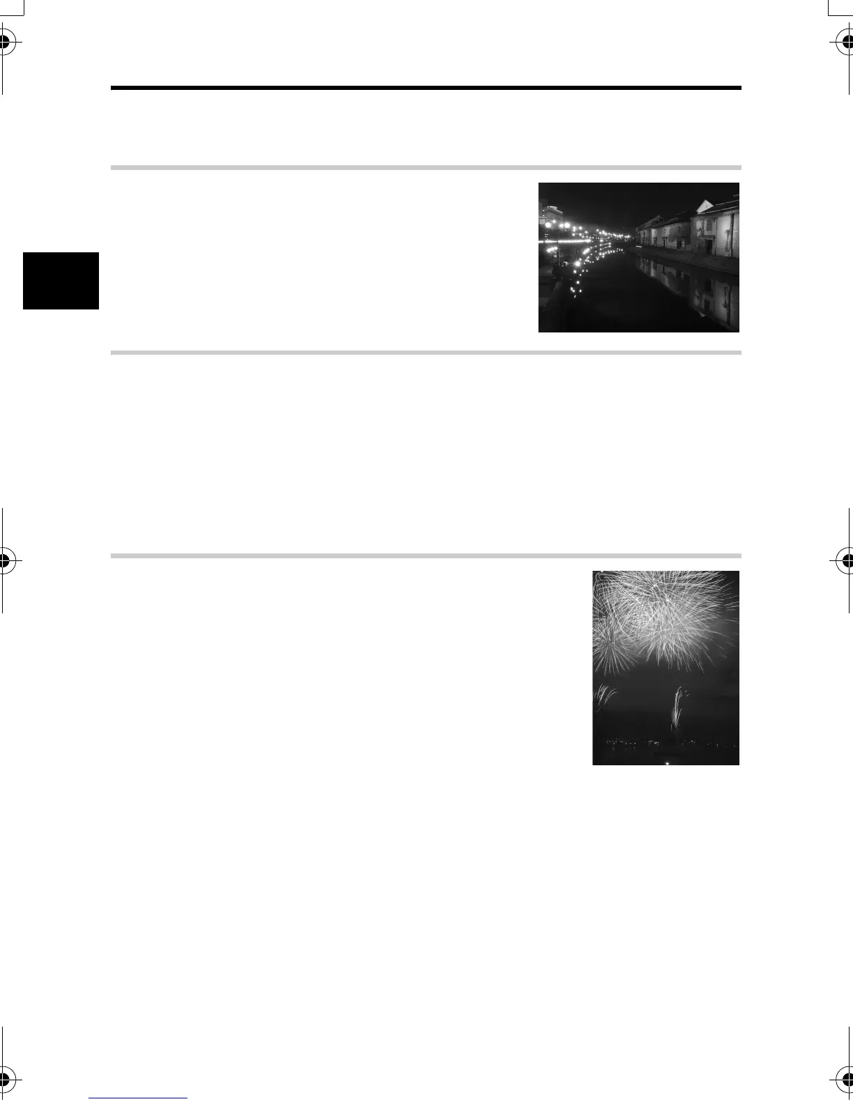 at night. Sunset and fireworks sceneries are also a type of night scene.